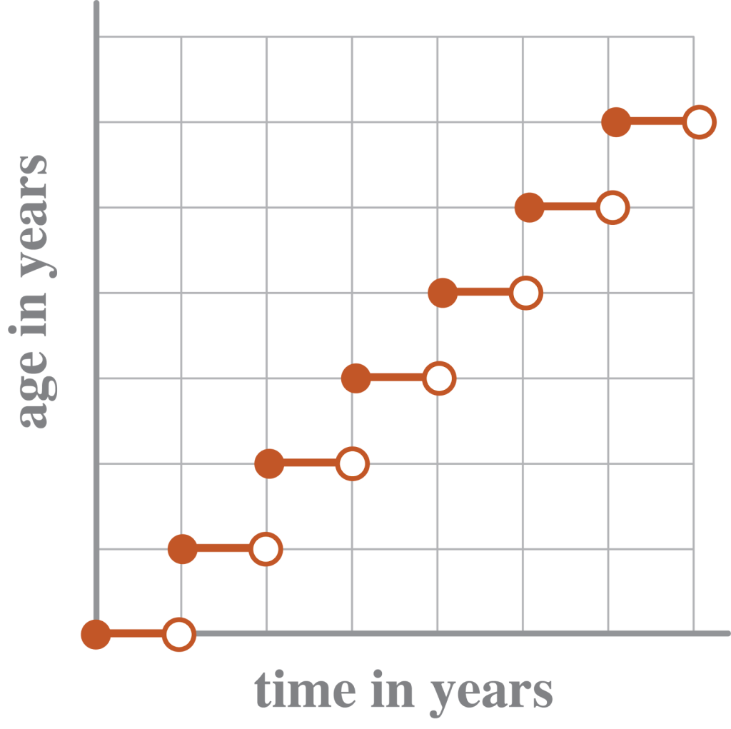 Sample: This is a floor or greatest integer function. A child is the previous age until their birthday. Then they are the same age for an entire year. At the next birthday, they are a year older for the entire next year.