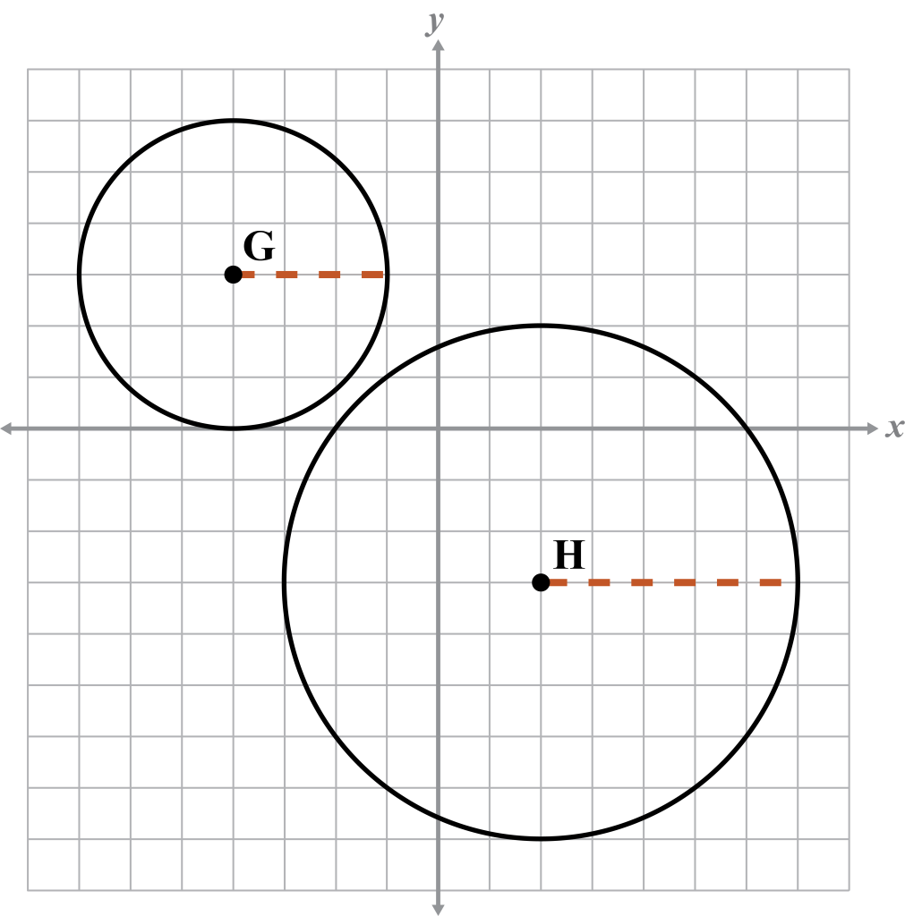 A: Circle G has a diameter of 6. Circle H has a diameter of 10