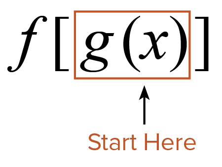 - The output for the inside function is the input for the exterior function. Therefore, you simplify from the inside out.