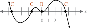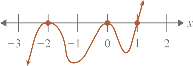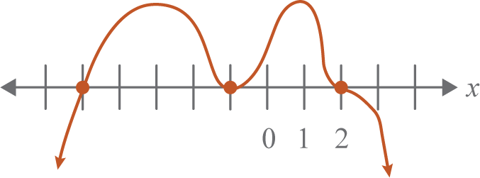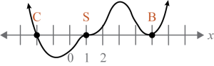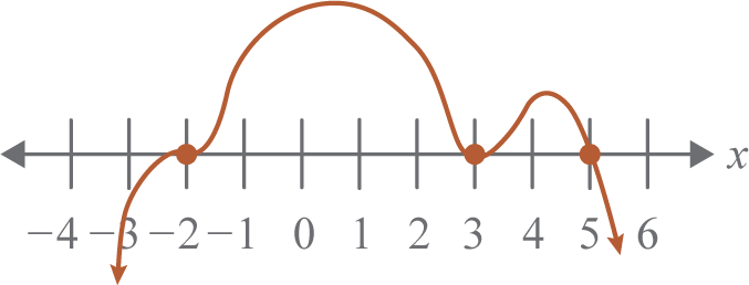 There is a double root (bounce = 2) when , a single root (cross = 1) when the graph crosses the x-axis when , a triple root (snake = 3) when .