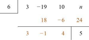 You need to complete the steps for synthetic division before an equation can be set up to solve for the value of n.