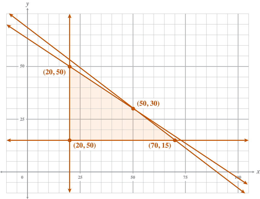 Notice that all vertices are on the vertical or horizontal lines. You may substitute y = 25 into and to find the horizontal vertices. Substitute x = 30 into the equations to find the vertical vertices.