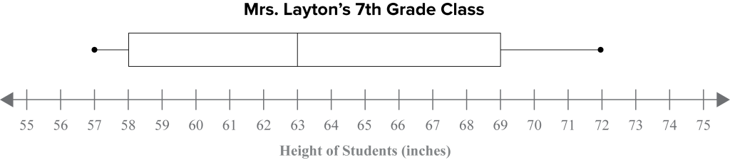 Min: 57Q1: 58Q2: 63Q3: 69Max: 72IQR: 6958=11Range: 7257=15