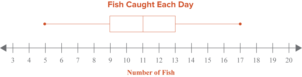 1. Yana and her family went on a fishing trip. The data set shows the number of fish caught each day over a ten day period. 15, 5, 9, 17, 8, 13, 11, 12, 11, 10