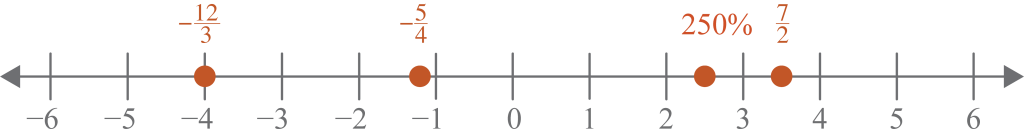 Plot and label the rational numbers on a number line. Label with the original form of the number.