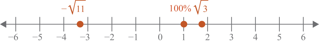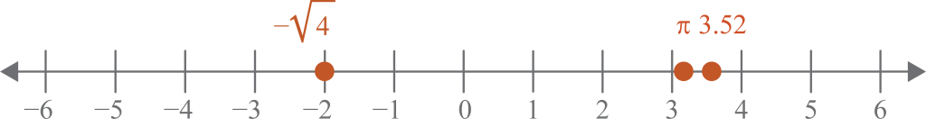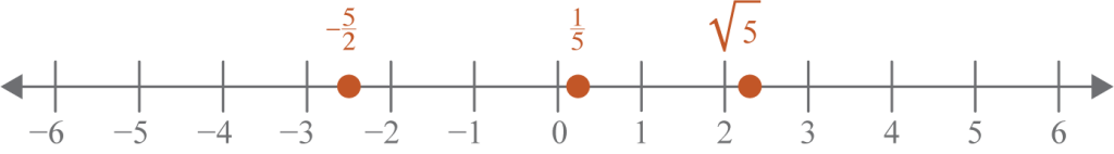 Plot and label the real numbers on a number line. Label with the original form of the number.